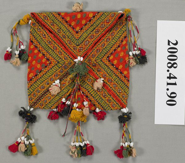 This ‘Bag (m’hype)’ by Kachin, is a riot of color and texture; constructed using beads, mirrors, and thread. You can almost feel the care taken in each stitch. It's not about hiding the process, but celebrating it. The material aspect is so striking, with the contrast of smooth beads against the tassels. The color is vibrant. Especially where the eye is drawn to the shiny mirrored discs that reflect the viewer. It's like the bag is acknowledging your presence, inviting you into a dialogue. Consider how the meticulous beadwork contrasts with the looser tassels at the bottom. This contrast captures something about the way art exists as an ongoing conversation, where every piece references another, a bit like a fashion statement! Ultimately, art is about embracing the unexpected. It's about finding beauty in the unfinished, and meaning in the multitude.