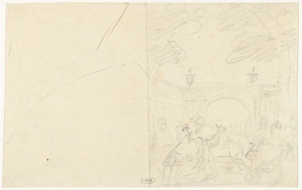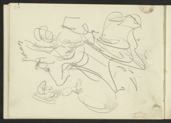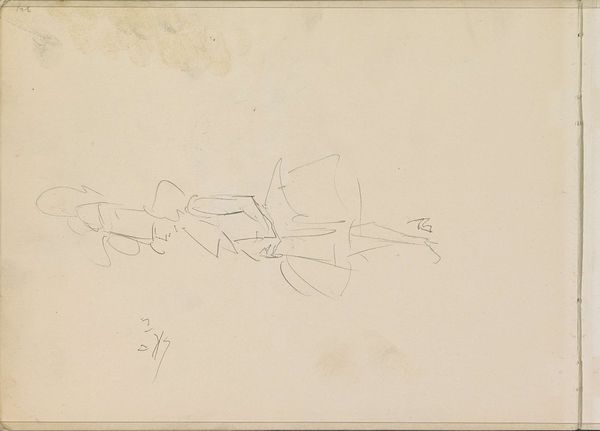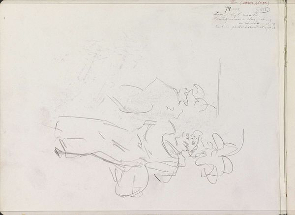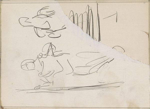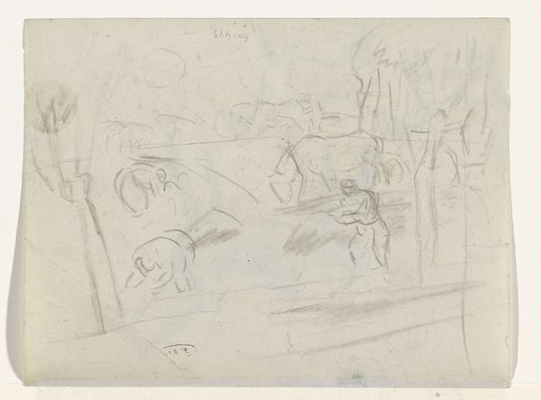 Curator: Breitner's "Figure Studies and Studies of Horses" made between 1880 and 1882 offers a glimpse into the artist’s creative process. Created with pencil and graphite, this drawing now resides in the Rijksmuseum collection. Editor: It's so raw, almost frantic, isn't it? The barely-there lines seem to capture a sense of fleeting moments. I immediately feel the movement, the energy of figures and horses caught mid-stride. Curator: Absolutely. Breitner was very interested in depicting the modern city, particularly the hustle and bustle of working-class life. Studies like these, even if incomplete, were crucial to how he eventually translated that energy onto canvas. His sketches acted as visual notes for more elaborate pieces. It is fascinating to see an image of everyday life emerge from this combination of figuration and romanticism. Editor: And the horses... there’s an interesting tension there. Horses are traditionally symbols of power and nobility, yet here, they’re reduced to simple outlines, almost abstracted. Does this downplaying reflect Breitner's views on societal power structures at the time? Was this the beginning of new imagery and political understanding of such animal figure in the public sphere? Curator: That's a valid interpretation. Given Breitner's preference for depicting ordinary city life and working-class subjects, it's plausible he wanted to challenge traditional, idealized representations. Art institutions began depicting working class life with renewed interest and such political interest may also be extended to depictions of animal figures. Editor: It’s a far cry from grand equestrian portraits that glorified aristocracy. The rapidly drawn composition makes it a more equitable representation. This more egalitarian approach also translates to gender since we can observe women being active and participating in modern public life. Curator: He was very much a product of his time, reflecting the burgeoning Realist movement in the Netherlands. Editor: It truly encapsulates his genius. It's a window into not just his art, but his perspective, questioning societal norms one quick stroke at a time. It reminds us how art can capture the feeling of a specific moment and become a time capsule of revolutionary times. Curator: Indeed, Breitner’s work compels us to think about the evolution of art’s role, from mere representation to becoming an active participant in the socio-political dialogues of the era.