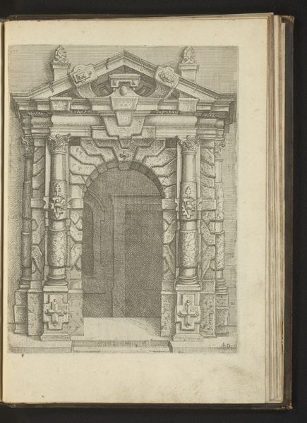 Wendel Dietterlin created this engraving, “Portaal in de Toscaanse orde,” during a time of significant cultural and artistic change. Dietterlin, living in the late 16th century, was part of the Northern Renaissance, a period marked by a renewed interest in classical forms, yet infused with a distinctly Northern European sensibility. This portal, with its imposing Tuscan order, reflects the era’s fascination with classical architecture. The image embodies the period's attempts to reconcile classical ideals with contemporary aesthetics. Dietterlin’s work can be viewed as a product of his time, influenced by the shifting intellectual and artistic currents that were reshaping Europe. Consider how such architectural designs might have been perceived then – as symbols of power and order, accessible only to the elite. Dietterlin’s print allows us to reflect on the intersection of art, power, and society during the Renaissance, inviting us to consider whose stories are told and whose are left out.