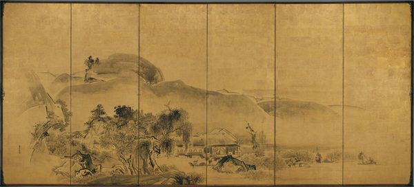 Yosa Buson, a leading artist of the Edo period, created this folding screen, likely in the mid-1700s, using ink and color on paper. As a *bunjinga* painter, Buson sought to capture the spirit of the literati, the intellectual elite of China, through his art. Travels through Mountains and Fields embodies this aspiration, reflecting the longing for a life of cultured leisure. A bridge, a humble dwelling, and figures in the landscape offer a vision of harmonious existence. The *bunjinga* style was more than an artistic choice; it was a statement of identity. In a rigid social hierarchy, artists like Buson used their art to express values of freedom, individuality, and intellectual pursuits. This landscape, therefore, is not just a scene, but a cultural and personal declaration. It prompts us to consider the ways we, too, seek meaning and expression in our own lives.