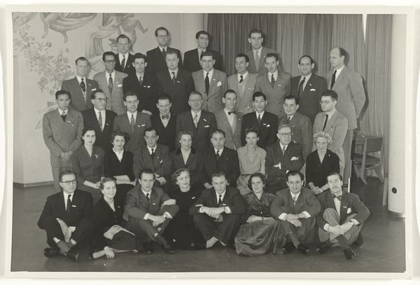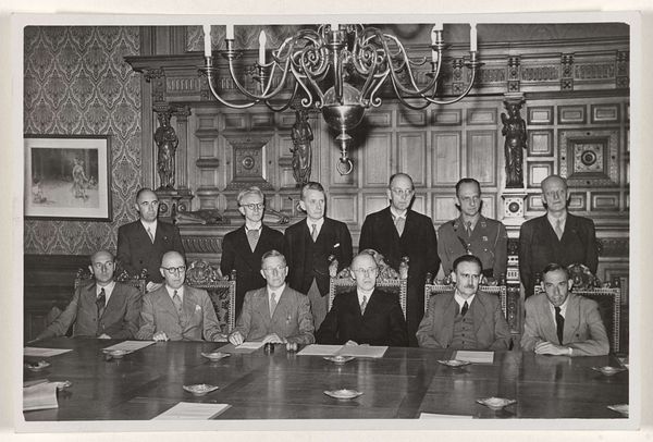 This black and white photograph of a Liberal International Congress was taken by fotopersbureau Lindeman. The shades of gray that form the composition feel so matter-of-fact, an index of reality. And yet there's also an undeniable painterly quality to the piece. I find myself drawn to the tapestry behind the subjects: the subtle shifts in tone create a sense of depth and texture, almost like an abstract painting. Then there's the grand fireplace that looms above, adorned with what appears to be a maritime scene. It’s like the photographer is in conversation with these different planes of representation: the backdrop, the subjects, the foreground. It asks us: what is real, what is staged? In that sense, this photograph reminds me a bit of Gerhard Richter’s blurry photos; both artists invite us to question the act of seeing. It is art that is open to infinite possibilities, always changing with each viewing.