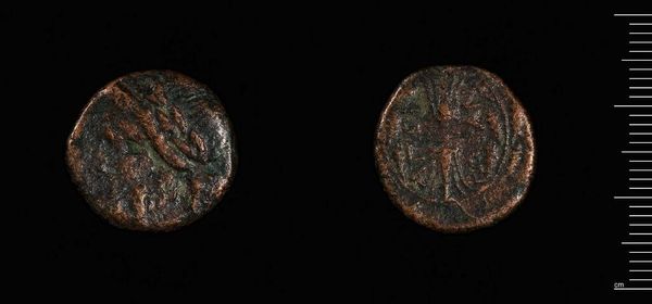Curator: This is a bronze coin minted in Ephesos during the reign of Valerian I. Just holding it, weighing in at 4.72 grams, gives you a sense of its age. Editor: It's true; even in this image, there's a palpable feeling of weight and history. The wear on the coin speaks volumes about its journey through time. Curator: Absolutely. Coins like these served as crucial tools for Roman imperial messaging. What narratives were being pushed in its design? What power structures were reinforced through its circulation? Editor: It's intriguing to consider how this small object might have shaped the everyday lives and perceptions of the people who used it. Currency is always so much more than legal tender. Curator: The portraits of emperors, rendered through such controlled circulation, were powerful symbols, especially considering the varying degrees of civic participation across the Roman Empire. Editor: Indeed, and it's a potent reminder that even something seemingly insignificant can tell us so much about the social and political landscape of its time. Curator: Exactly. I think these little things have massive stories to tell. Editor: Definitely, there is something very fascinating about that concept.