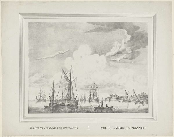 Editor: So, this engraving is titled "Arrival of Queen Victoria in Cherbourg, 1858." It seems to be a print commemorating a historical event. All the ships, the billowing smoke – it's quite dramatic, almost propagandistic. What can you tell me about this piece from a historical perspective? Curator: It's a fascinating record of Anglo-French relations. These types of engravings served as visual news, circulated widely to shape public opinion. Consider the date – 1858. Just a few years after the Crimean War where Britain and France were allies. How do you think images like this played a role in solidifying that alliance and potentially downplaying past conflicts? Editor: That's a great point. I hadn’t considered its role in public diplomacy. I guess it's not just about recording the event but crafting a particular narrative. Was Cherbourg a strategically significant location for this meeting? Curator: Absolutely. Cherbourg was a major naval port, and the meeting symbolized a strategic partnership. Think about the function of grand displays, then and now. Who is this image intended to impress: domestic or international audiences? What’s gained by demonstrating naval power alongside a show of diplomatic harmony? Editor: I see – it’s about power projection as much as friendship. It seems the visual language speaks of partnership, while the underlying message reinforces their combined strength. It’s interesting to think about how seemingly straightforward depictions can be so loaded with political meaning. I’ll never look at historical engravings the same way. Curator: Precisely. It shows the potent ability of art to operate within—and shape—political realities. Always consider what a piece is *doing*, and for whom.