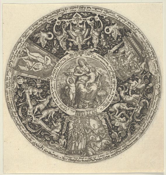 This print titled 'Maria met kind en vier scènes uit haar leven' was created in the 16th century by an artist known only as Monogrammist S. It's a tiny work, only 60 by 45 mm. The piece offers us a window into the religious and cultural values of the time, when the Virgin Mary was a central figure in both religious devotion and artistic expression. It also hints at the role gender played in the narratives of the era. Mary is often presented as the ideal of motherhood, embodying purity, obedience, and suffering. This work, with its intimate scenes from Mary's life, invites viewers to connect with her story on a personal level. While the print reaffirms the prevailing social norms, it also reflects a complex interplay between religious ideology, gender roles, and individual experiences. It prompts us to reflect on the emotional and personal dimensions of faith.