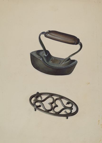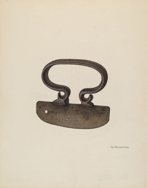 Curator: Welcome. We’re standing before LeRoy Griffith’s pencil drawing titled “Padlock,” created around 1941. What’s your first impression? Editor: Well, right away I feel a sort of stark quietude emanating from this arrangement. The soft gray of the pencil work on that plain background... it feels isolated. Lonely, even, considering a lock’s whole purpose is security, warding things off. Curator: Absolutely. The visual language of a padlock is so loaded. On one hand, it's about security, keeping things safe. But the object carries heavier historical connotations about inaccessibility, restriction, and systems of control. Editor: Hmm, true. There’s something very permanent about it, the unyielding circle of that metal U-shaped piece... The way it just sits there, apart from its base... severed. That severence hints at both function and brokenness simultaneously. Do you think the era, 1941, influenced that duality at all? Curator: The date is key. Created during wartime, this padlock resonates with heightened symbolism. Security wasn’t just personal but national. Padlocks physically safeguard possessions but visually, symbolically, they safeguard ideals, secrets, safety, during an extremely dangerous period. That single key suggests a profound responsibility to the owner as well as to those counting on what the lock protects. Editor: That's beautifully put. It takes on a meaning far grander than just a utilitarian item. Also, notice how simple yet expressive the execution is, it looks photorealistic from afar. It makes me want to just reach out and try that key... Curator: Indeed, there's a hyper-realism achieved with simple pencil marks that makes this common object more enduring, doesn't it? Editor: I think so, and thank you for unlocking this seemingly simple drawing for me. It made me look closer at an everyday thing, and the weight it carries beyond its obvious use. Curator: My pleasure. Hopefully this reflection will invite others to pause and discover new layers of meaning.