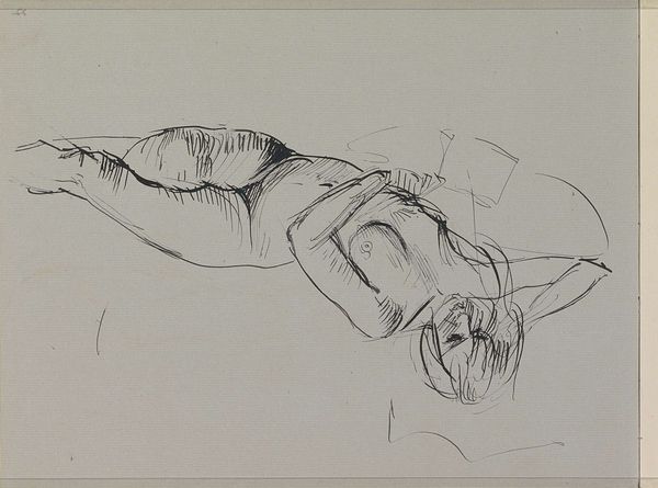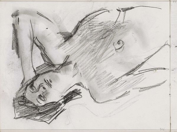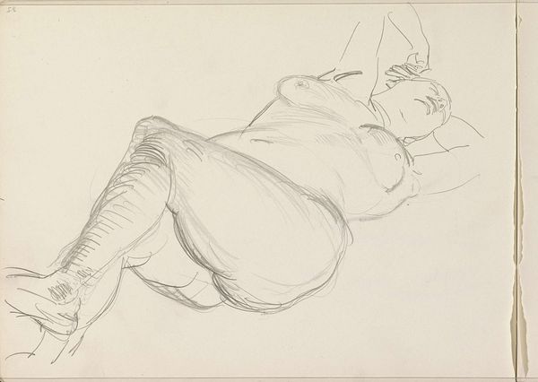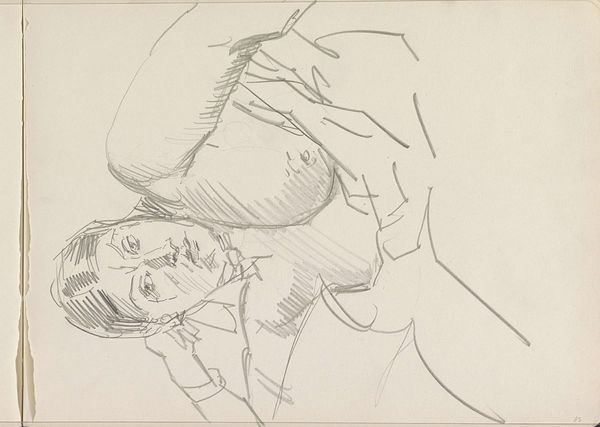 Isaac Israels made this drawing, ‘Liggende vrouw’, with what looks like graphite on paper. The quick, searching lines, like the ones defining the woman's face and hair, feel urgent, like the artist is trying to capture a fleeting impression. This to me is what drawing is all about, the process of looking and responding in real time. There's something intimate about the way Israels uses line to suggest form and shadow. Notice how the lines around the figure’s head and outstretched hand are softer, more diffused, giving a sense of depth and volume without being overly descriptive. This is a lovely drawing, not overly laboured, but a fresh and fluid expression of his vision. It reminds me a little of Degas's drawings, especially in the way he captures the body in motion with such economy and grace. But Israels has his own unique voice, a kind of understated elegance that feels both modern and timeless. Ultimately, it’s a reminder that art is a conversation, a way of seeing and being in the world that is always evolving.