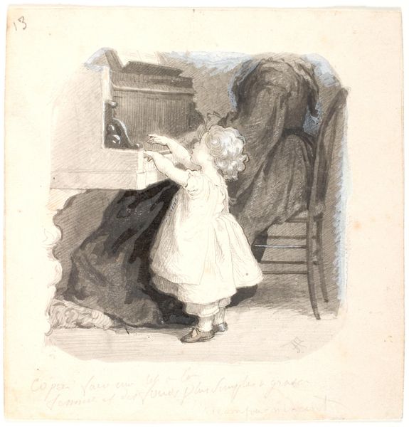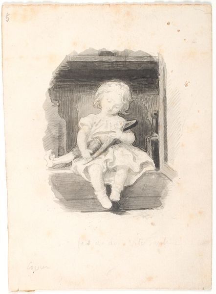 Lorenz Frølich made this pencil drawing, titled "God mad," which translates to "Good Food", at an unknown date. The drawing, now at the SMK in Denmark, depicts a child enjoying a meal. The image offers a glimpse into 19th-century Danish culture, particularly the emphasis on domesticity and childhood. Frølich's choice of subject matter reflects a broader European interest in scenes of everyday life, especially those involving children, which became popular with the rise of Realism. The inscription at the bottom of the page, "La bonne soupe" indicates that the child is eating soup. In this context, the image is a testament to the rising bourgeoisie and their lifestyle. To fully understand Frølich's work, one might research the visual culture of 19th-century Denmark, looking at popular imagery, children’s books, and domestic scenes in painting and illustration. Such research helps us see how artists like Frølich contributed to the construction of social values and norms through their art.