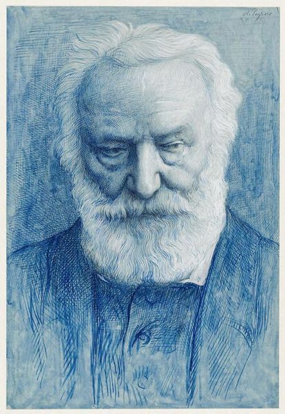 Curator: Looking at José Garnelo's portrait, or "Retrato" as it's simply titled, immediately gives me a sense of introspection. Editor: It feels rather somber to me, actually. The heavy use of graphite gives it this deep, almost melancholic aura. The tight cross-hatching suggests a certain formality. I wonder what the social standing was of someone who would commission such a realistic, almost academic drawing. Curator: That's a key point! The sharp detail, especially around his face, gives the portrait a level of realism that's intriguing. Look how he holds his chin; it speaks volumes about confidence and perhaps a hint of weariness. Consider what the artist and subject alike sought to communicate via these now quite conventional codes. Editor: Definitely. The man's gaze avoids ours, directed off to the side in contemplation. What story does he hold back, I wonder? But also, his direct gaze on the viewer might carry imperialist notions from his social setting back then. Was Garnelo aware of all that he represented through symbols? Curator: I find the mustache and beard so symbolic; it speaks to a cultural moment defined by certain notions of masculinity and status. Also the formal clothing. These were all symbols which conveyed clear cultural identity and meaning in his time, instantly placing the person in a very precise social role. What do those mean now? Editor: I agree. Thinking of today’s portraiture practices where gender, sexuality, or power dynamics get inverted. There’s a strong historical context to unpack here. This “retrato” seems a long cry from identity expressions or any social/political disruption practices via art. Curator: Absolutely, the meaning evolves as our collective cultural narrative shifts. The value here lies in understanding the man’s projected identity at that precise time, in addition to what is visible now. Editor: Right, how it reflects societal conventions of representation, allowing a critical exploration of class, identity, and maybe privilege within a specific artistic frame. A relevant piece for its traditional artistic skill while demanding us to re-evaluate how identities get expressed across time. Curator: Exactly. These traces left across artistic timelines provide powerful insights into how meaning gets constructed and transformed within the cultural imagination. Editor: Yes, the intersection between then and now becomes crucial.