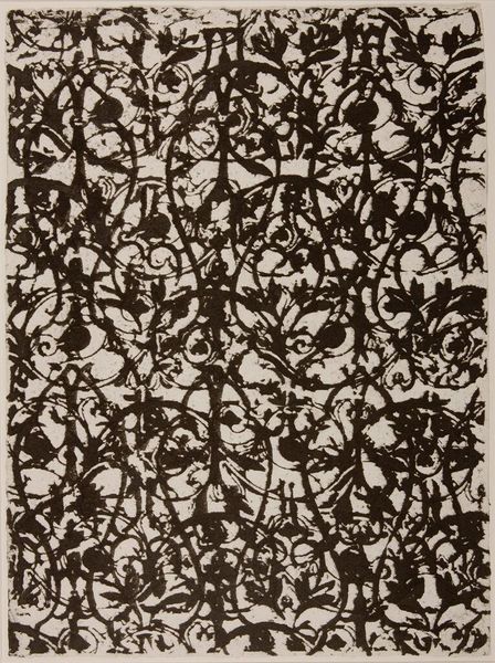Editor: This is Margaret Lanzetta’s “Strangeness of Beauty,” a large-scale print. The repeating patterns are so ornate, but the grey palette feels almost industrial. What do you see in this piece? Curator: I see a critique of beauty standards embedded in historical power structures. The ornamental design evokes aristocracy, but the muted colors and repetitive nature hint at the labor and conformity that uphold those systems. How might this relate to contemporary ideals of beauty and their impact on identity? Editor: So, the “strangeness” is in the tension between the beautiful form and its complicated origins? Curator: Precisely. It challenges us to consider whose beauty is valued and at what cost. Editor: That makes me think about fast fashion and other industries that profit from exploiting labor. Curator: Exactly. Art like this encourages us to engage critically with the world around us. Editor: I’ll definitely look at patterns differently now.