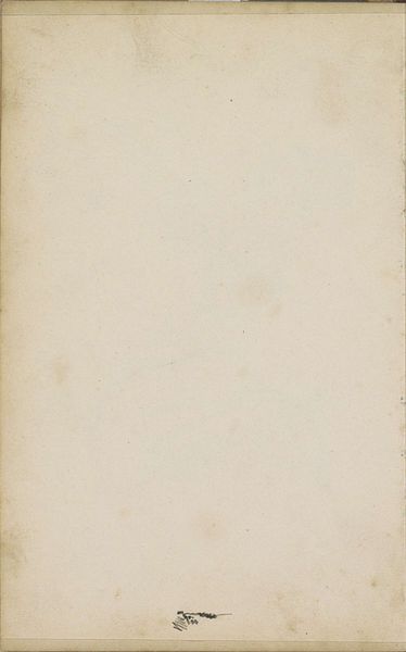 Editor: Here we have Johannes Tavenraat's "Kleurnotitie," made sometime after 1854. It's a monochrome drawing in ink on paper. My initial reaction is…underwhelming? It feels like a blank page with just a few scribbles. What do you see in this piece? Curator: On the surface, yes, it seems simple, almost unfinished. But consider the time it was created. After 1854, the rise of industrialization rapidly changed landscapes and social structures. How might Tavenraat be responding to this shift? Could this seemingly empty space actually be a commentary on loss, or the erasure of a former way of life? Editor: That’s interesting. So, you’re suggesting the emptiness isn’t just a void, but potentially a statement about societal changes? The monochrome aspect could emphasize a lack of vibrancy or hope, perhaps? Curator: Precisely. The use of a single color could highlight a flattening of experience, a kind of visual shorthand for a world becoming increasingly uniform and less diverse. And those seemingly random scribbles... might they represent the frantic, almost illegible, traces of individual experiences being overwritten by larger forces? Editor: I hadn’t thought about it that way. It felt like nothing, but now I’m wondering if it's protesting something by showing what's missing or being lost. Curator: And that is precisely the power of art. It allows us to engage critically with our history and the underlying structures of power that shape our lives. Perhaps this “Kleurnotitie” invites us to consider what voices, what colours, are being silenced in our own time. Editor: Wow. I came in thinking it was an unfinished sketch, and I’m leaving considering ideas about erasure and the impact of social change on individual lives. Thank you for sharing a completely new perspective on what this artwork might signify. Curator: It's a constant process of re-evaluation and critical dialogue. My perspective evolved just now, thanks to you!