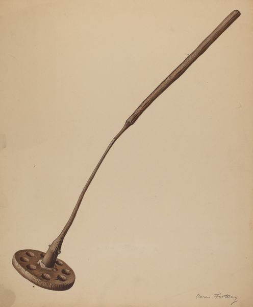 Albert Geuppert made this drawing of a fireplace shovel on paper, and it feels like he approached it with a similar sensibility to using a painting medium. The shovel itself is shown with what looks like pencil or charcoal, and Geuppert has captured the object with the marks and imperfections that come with use. The shovel is a dull bronze or rusted brown with flecks of white and grey, and the handle is simple and long, topped off with a whimsical flourish of two hearts, or perhaps inverted question marks. The surface texture of the shovel head appears rough, maybe implying rust or wear, which contrasts with the sleekness of the handle. It makes you wonder about the life this tool has lived, the fires it has tended, and the stories it could tell. This drawing reminds me a bit of the work of Giorgio Morandi, who also elevated everyday objects through close observation and careful rendering. Both artists invite us to find beauty and meaning in the mundane. Like all good art, this simple drawing encourages us to look closer, to question, and to find our own interpretations.