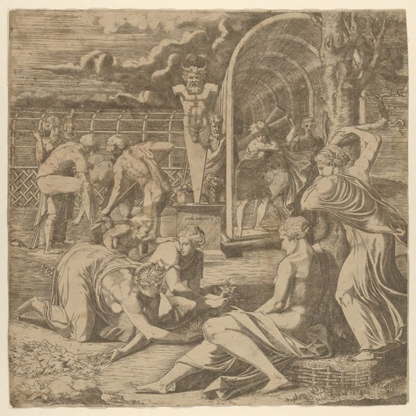 Abraham de Bruyn made this print, *Diana and Her Nymphs in a Garden*, sometime in the late 16th century. It’s an engraving, meaning that the design was incised into a copper plate, inked, and then printed onto paper. Look closely, and you’ll notice the subtle gradations of tone and very fine lines that build up the image. These are the result of a skilled hand manipulating a tool called a burin. The engraver would have used this to carefully cut into the metal, allowing for precise control and intricate detail. The process of engraving demanded considerable labor, skill, and time. Each print was the result of a collaboration between artist and the printmaker. As the market for prints expanded, these artisans played a crucial role in disseminating images and ideas across Europe. The rise of printmaking reflects the growing forces of commercialization and mass production that characterized the early modern period.