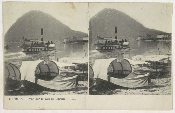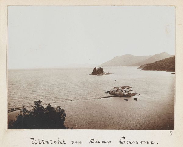 Curator: Here we have a gelatin-silver print from between 1873 and 1883 by Florentin Charnaux. The work, titled "Gezicht op Campfer, de Silvaplanersee en de Piz Corvatsch," offers a panoramic view of the Swiss landscape. Editor: It has such a tranquil quality. The muted tones and the way the town nestles so neatly into the landscape almost makes it seem like a fairy tale setting. I wonder, is it just a visual record? Curator: Well, these landscapes became quite popular amongst the emerging middle class. This view in particular, presenting the village alongside these incredible natural formations, speaks to both an appreciation of the sublime power of nature, but also humankind's place within it, perhaps a marker of social status. Editor: Sublimity, definitely! The mountain looming in the background contrasts with the almost idyllic town below. I also think of the journey, the pilgrimage almost, that people would take to find this view. The mountain has always held significant symbolic weight hasn't it, connoting something grander than ourselves. Curator: Absolutely, and we shouldn't forget the social context of photography at the time. The rise of tourism in the Swiss Alps really transformed places like Campfer. Photography was becoming a key tool to capture the splendor of the region. These photos then circulated widely, driving further interest. Editor: Did Charnaux consciously include visual motifs and allusions he expected his audience to know and decode? Those rooftops layered in the foreground could stand in for community; and notice how the angle pulls your eyes naturally to the mountain in the distance, an image that must have said "adventure awaits!" at that time. Curator: Certainly. These early landscape photographs helped define an idealised image of Switzerland that catered to the tourist gaze, showing them the beautiful mountain views. Of course, we also need to remember what these photographs might not be showing, namely the more complicated realities of life in these rapidly changing regions. Editor: So true. Considering its context, this piece presents us a carefully crafted experience, not just a view, a perspective shaped as much by industry and tourism as by nature itself. Curator: Indeed. It is interesting to see how photography played such an integral role in both shaping and marketing an imagined experience that the wider public could partake in, contributing to the area's commercial prosperity. Editor: Ultimately, for me, it's the visual symbols working in tandem with cultural narratives that gives this image enduring resonance.