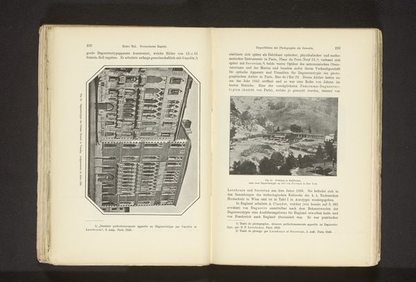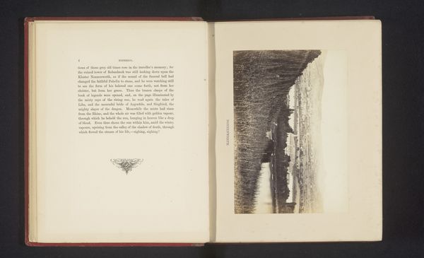 Curator: What hits me first is the decay – or maybe the vulnerability—in this pre-1877 engraving titled, “Twee gezichten op vermoedelijk het columbarium van de Vigna Codini." Editor: Absolutely. Before we dive into the specifics, let's paint a picture. It’s presented as a page within a book, complete with descriptive text. On the right, two photographic views: one a crumbling brick structure, and beneath it, a hillside riddled with arched openings. Both feel… weighty with time. Curator: Time, exactly! I wonder about the original viewer, poring over this. Did they sense the weight of empires crumbled, as we do now? Editor: Indubitably. This Columbarium, a Roman burial structure, pulses with symbols of continuity. The architectural motifs--the arches, the brickwork--evoke a civilization meticulously planning for eternity, and their care over the earthly remains. The images carry within them a specific emotional intent. The arrangement itself… Curator: …Is carefully considered, right? Placing these images within a historical text deepens that sense of memorial, giving these structures more prominence. It gives me that feeling that death is only transition... a beginning instead of a end, which many columbarium hold to that truth Editor: The columbarium also makes me consider, though, that those endless niches remind us of the industrial scale that the empire once employed even to store those remains. But I get what you’re suggesting: that they planned those sites not as static, morbid depositories, but sites of continued community and memory, a kind of living monument in stone. It’s an amazing paradox. Curator: Absolutely paradoxical. Viewing it makes me reconsider the fleeting nature of fame. Names erased by the relentless erosion and relentless cycle. How lovely—and terrifying.