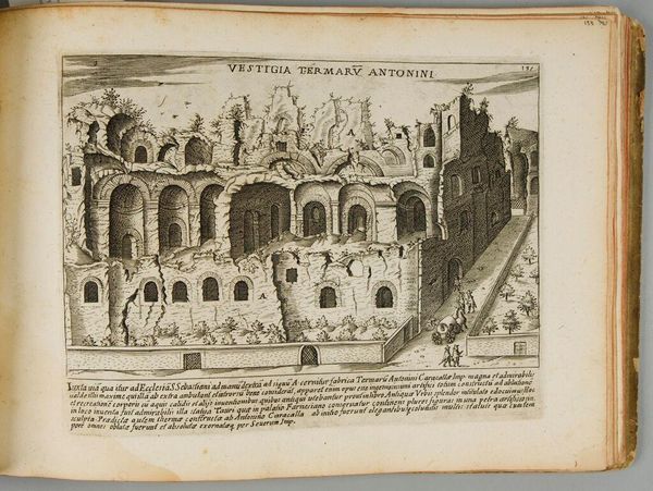 Étienne Dupérac made this print of the Palatine Hill in Rome using engraving, a painstaking process of incising lines into a metal plate, inking it, and pressing it onto paper. The stark contrast between the ink and paper gives a graphic clarity to the image. Think about the hand-eye coordination, the precision required to render complex architectural details and the crumbling ruins of the Palatine Hill using only lines. The linear quality emphasizes the geometry of the Roman architecture, a testament to human engineering, while also hinting at the ravages of time. Dupérac's labor-intensive printmaking process highlights a tension between the precision of the engraving and the ruinous state of the depicted architecture. This reminds us that materials, making, and context are intertwined, challenging the separation of craft from fine art and prompting reflection on labor, skill, and time.