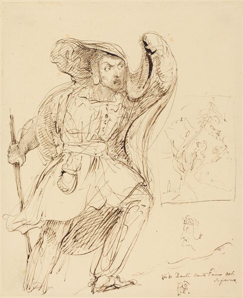 Curator: Sargent's "Study of Soldier Extending Arm to France" evokes a sense of duty and perhaps a touch of melancholy with its muted tones. Editor: The unfinished quality, the sketchiness, amplifies that mood. It feels like a fleeting moment captured during a time of great uncertainty. Curator: Indeed. This drawing, intended for a mural at Harvard's Widener Library, symbolizes America's aid to France during World War I. The outstretched arm represents a helping hand, bridging continents. Editor: But there's a stark contrast. The soldier is rendered with considerable detail, while "France" is just an arm and lips. Is it an embrace? An offering? The symbolism feels incomplete. Curator: Perhaps that incompleteness mirrors the open-ended nature of wartime alliances and the sacrifices involved. The extended arm is an ancient symbol of alliance and power reaching out to other nations. Editor: It's a powerful gesture, fraught with the complexities of international relations and the human cost of war. A study in contrasts, much like war itself. Curator: Precisely. It prompts us to consider the weight of history and the symbols we create to navigate it. Editor: A reminder that even the most valiant gestures can leave us with lingering questions and a sense of what remains unsaid.