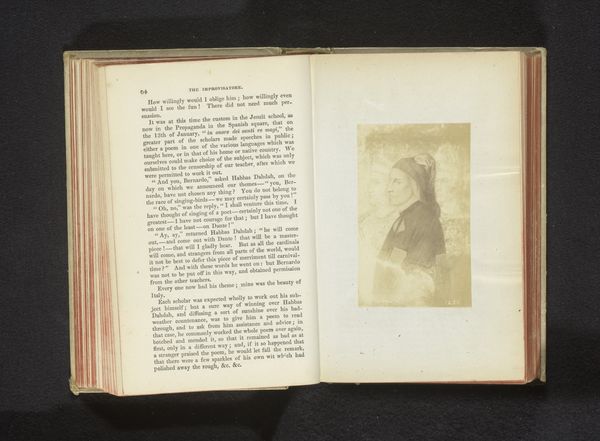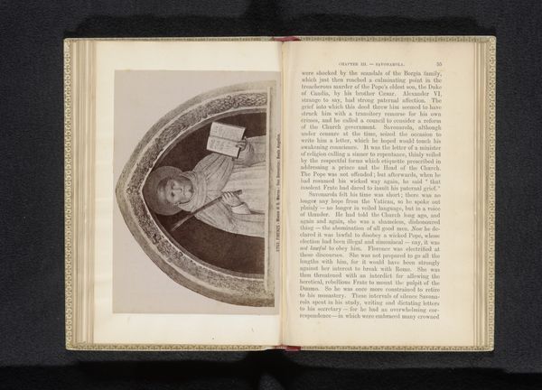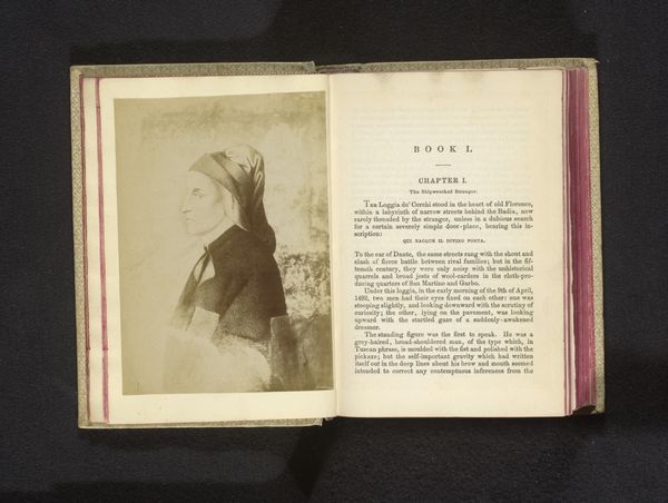 Curator: This print offers a photographic reproduction of a fresco portrait of Dante, placing it in the period of roughly 1870 to 1880. The original fresco… I wonder if it survives. Editor: My initial reaction is of something aged and ethereal, like a fading memory captured imperfectly. The texture is quite coarse; one really gets a sense of the paper and the printing process. Curator: Yes, the printing technique itself certainly emphasizes the materiality. It draws our attention to the layering of ink on paper, the tangible result of reproductive technologies encountering older art forms like frescoes. It highlights how these images circulated and were consumed. Editor: Beyond the process, it also makes me think of Dante's enduring symbolic power. The halo effect around his head and those ghostly figures in the background—it creates an almost saintly aura. Dante as poet-prophet, almost divinely inspired. Curator: It makes you think about artistic labor, too. Somebody physically operated the camera, prepared the printing plates. We have Romantic notions of solitary genius like Dante himself, but consider the skilled craftspeople that actually facilitated access to that image. It grounds these mythical figures in material reality. Editor: True, the mechanical reproduction takes away from the idea of the "original" and calls our attention to the many people involved in producing, disseminating, and consuming the image of Dante as cultural icon. Yet, paradoxically, the image persists as a touchstone for artistic inspiration. What did Dante mean to people in the late 19th century and to us today? Curator: Right, we have this tension. Dante's iconic status seems separate from these individuals actually producing, purchasing and circulating prints. How were those romantic, even nationalist ideals, built upon tangible forms and distributed across vast social landscapes? Editor: So we’re left with this interesting question: Can mass production of images undermine the unique authority of the artist and his work, or does it instead help immortalize him through wider cultural circulation and accessibility? Curator: A provocative question that this work begs us to ask! Thanks for offering that symbolic perspective!