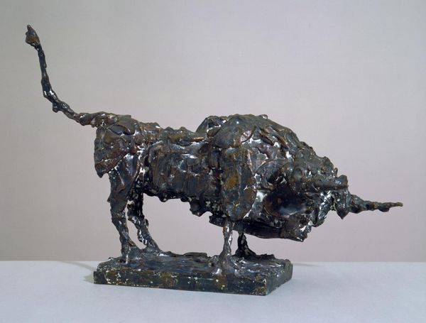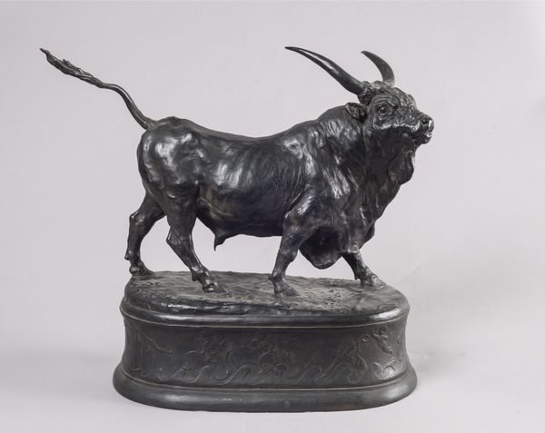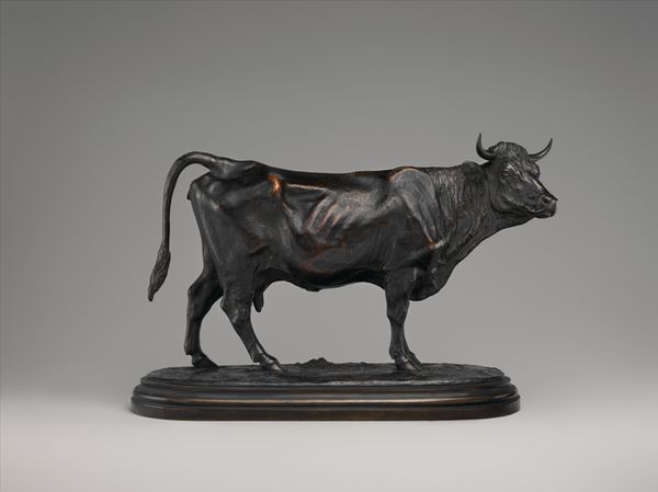 Editor: We’re looking at Anne Marie Carl Nielsen’s “Standing Bull” from 1896, rendered in bronze and located in the SMK. I’m immediately struck by its solidity; it feels both powerful and grounded. What's your take? Curator: Well, consider the choice of bronze. Its materiality speaks to labor, both the artist’s and the foundry workers'. Bronze, from extraction to casting, is embedded in a system of production. Does this rendering of a powerful animal reflect social power structures of the time? Editor: That’s an interesting point; the bronze-casting process itself becomes part of the narrative. The process of molding the bull using such raw materials elevates it from just a work of art to an artifact loaded with cultural information. Curator: Precisely. And the context! Agriculture was evolving in the late 19th century. What role did cattle play in the economy and labor practices of that period, and how does this sculpture reflect or challenge those systems? Think of the bull not just as an animal, but as a commodity, a symbol of wealth and sustenance shaped by human intervention. Editor: So you're saying that seeing the bull depicted in bronze shifts its meaning from the animal to a representation of economic power? And how agriculture and industry at the time relate to it? I hadn’t considered that before! I appreciate this take! Curator: Indeed. Consider the sculpture as the product of particular labor arrangements, reflective of its time. Appreciating art involves an examination of materiality and means of production. Editor: Looking at the work, the material processes of sculpting it now open my eyes to an entirely new side. Thank you!