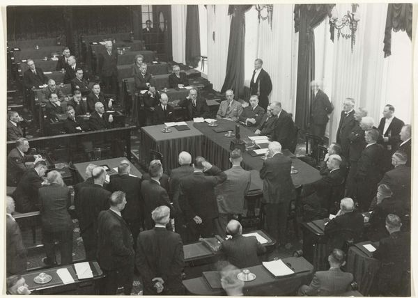 This photograph by the Keystone Press Agency captures Prime Minister Pieter Gerbrandy holding a press conference in London about his return to the Netherlands. Gerbrandy’s appearance, his hand resting confidently on his hip, exudes a determined resolve at a pivotal time. From 1940, the Dutch government was exiled in London due to the Nazi occupation. His return marked a transition from resistance to rebuilding, laden with hope and uncertainty. Consider the emotional weight of this moment, where the personal dreams of home intertwine with the political realities of a nation scarred by war. Captured by an anonymous photographer, this press shot serves not only as a historical record of leadership, but also as a testament to the collective anticipation of a homeland regained.