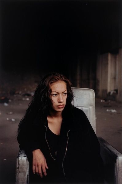 Curator: Sarah Lucas, born in 1962, presents herself in "Self Portrait with Knickers," currently held in the Tate Collections. What strikes you first? Editor: The mood, definitely. There's a directness, a challenge in her stare. The knickers hanging behind her look like bunting but they're actually loaded, domestic, and a bit confrontational. Curator: Absolutely. Lucas often plays with mundane objects, imbuing them with symbolism. Knickers become more than just underwear; they're a symbol of femininity, domesticity, and perhaps vulnerability. Editor: And the setting, the overgrown garden, almost feels like a stage for this defiance. It's a reclamation of space, a bold statement. Curator: Lucas really pushes boundaries. She makes us confront uncomfortable truths about gender, sexuality, and the self. Editor: It's a powerful image that invites us to question what we think we know. Curator: A lasting impression, indeed.
