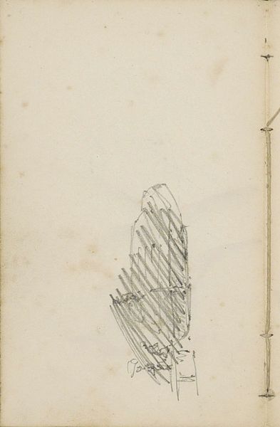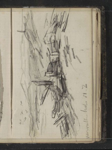 Editor: Here we have Niels Larsen Stevns’ “Figurskitser,” made between 1932 and 1935 using pencil and graphite. The sketches are quite faint, and they remind me of early studies of the human figure in motion, like those of Leonardo da Vinci, yet in the form of modernist abstraction. What strikes you about this piece? Curator: What captivates me is the way the artist manipulates line and form to suggest movement, eschewing realistic representation. Notice how the seemingly haphazard strokes of the pencil in the three suggested figures are creating structure without reliance on representational detail. It allows for the appreciation of form in its most rudimentary stage. Editor: So, you're saying that the lack of detail is actually a strength? I initially found it a bit hard to decipher. Curator: Precisely. Consider the density and directionality of the hatching. Observe, for example, that these lines not only describe the figures but create a sense of volume. The very emptiness becomes integral, an invitation for the eye to complete the forms. We could interpret this strategy as a challenge of classical assumptions about depth, shape and contours, don’t you agree? Editor: That's an interesting point! I hadn't thought of it that way, but focusing on the technique makes the image come alive more clearly. Are we ascribing value based purely on what’s visually present in the sketch itself and how it has been executed? Curator: Indeed. We can analyse Stevns’ work by considering line, tone, and the materiality of the medium. This methodology allows one to look beyond iconographic and contextual approaches, giving way to the formal properties of this graphite drawing, such as shape, texture and balance. Editor: I see! I feel I now have a richer perspective on the artist's choices. I learned a lot by thinking of pure form! Curator: As have I, the sketch unveils layers when the visual elements take the foreground.