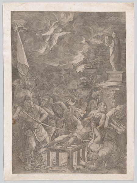 Giorgio Ghisi created this engraving, "The Vision of Ezekiel," in sixteenth-century Italy, visualizing a scene from the Old Testament. It is a reminder of the cultural authority held by the church and how its biblical narratives permeated artistic production. The image creates meaning through its dramatic depiction of death and resurrection, reflecting the religious beliefs and anxieties of the time. Ghisi’s references to classical antiquity are evident in the figures' poses, the architectural motifs, and the Latin inscriptions, revealing the influence of Renaissance humanism. Italy at this time, with its powerful city-states and the presence of the papacy, shaped artistic patronage. The scene can be seen as a commentary on mortality, judgment, and divine power. Was this image used as a lesson, a threat, or a hopeful message for the future? To fully appreciate the social and institutional contexts of this artwork, we can consult historical texts, theological treatises, and artistic biographies. This helps us understand the complex interplay between art, religion, and society in Renaissance Italy.