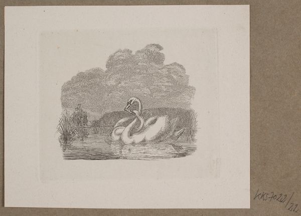 Editor: So, here we have "Duck in the Water" – "Eend in het water" – a pencil drawing created sometime between 1775 and 1833 by Jean Bernard. There's something so tranquil about this little scene. What captures your attention when you look at it? Curator: Tranquil, yes, absolutely. I'm drawn to the subtlety, the quiet confidence of the pencil strokes. It’s a study, really – a moment captured with impressive economy. You almost feel the cool, still water. Do you notice how Bernard hasn't tried to fill every space? Editor: I do! There's a lot of empty space. It almost feels like he’s emphasizing the stillness you mentioned. Curator: Precisely. It's not about grand statements. Look at the detail he does include: the duck’s reflection, the suggestion of reeds. It hints at a larger world, but remains focused. Almost meditative, don’t you think? It reminds me that less really *can* be more. Is it minimalist for its time? Or just simple? Editor: I hadn't thought about it that way, but minimalist for the time! It does leave a lot to the imagination. I'll look at simple landscapes differently now! Curator: It all makes you think... and hopefully, feel, doesn't it? Simplicity invites you in, whereas busy images give you information at a glance. There is power in that intimacy.