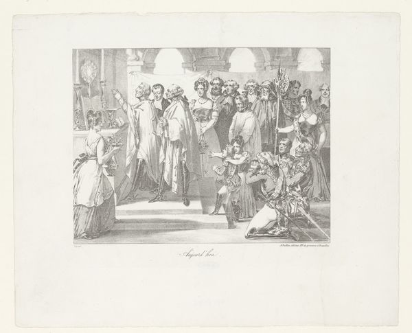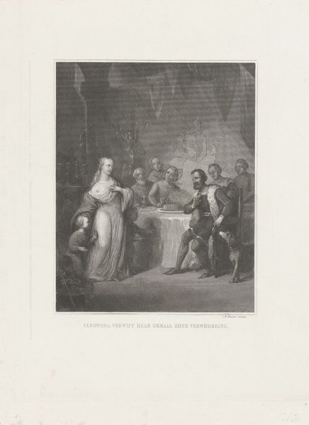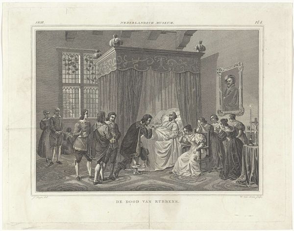 Johannes Alexander Rudolf Best created this print, titled *Prins Willem III ontvangt Michiel de Ruyter*, in 1673. The printmaking process is a fascinating one, and the lines we see here are no accident. The image was likely created using a technique like etching or engraving, where the artist would have painstakingly carved lines into a metal plate. Ink is then applied to the plate, and the surface wiped clean, leaving ink only in the carved lines. The plate is then pressed onto paper, transferring the image. Consider the labor involved in creating this work. Each line represents hours of meticulous work, a testament to the artisan's skill. The stark contrast of light and shadow, achieved through the density and direction of the lines, gives the scene a dramatic quality. This mode of production, while capable of mass production, still carries the weight of individual craftsmanship. It reminds us that even in the age of mechanical reproduction, the human hand leaves its indelible mark.