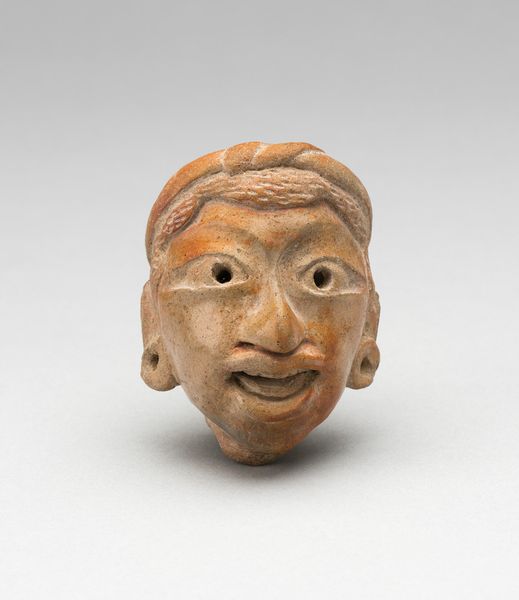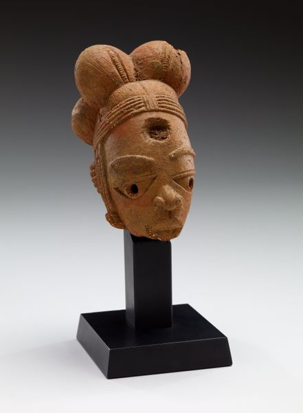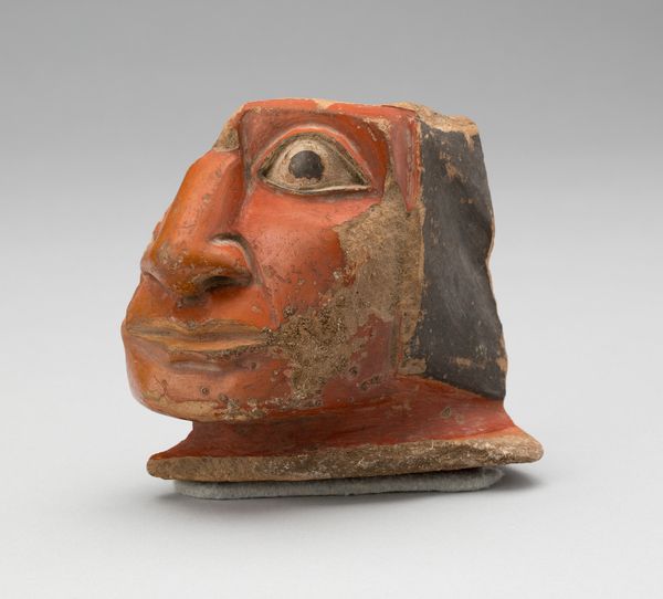 This small head, created by an unknown Huastec artist, is on display at the Art Institute of Chicago. The sculpture, though diminutive at just 6.4 centimeters in height, presents a captivating study in form. The face is rendered with simplified geometric shapes, yet maintains a striking sense of presence. Notice the stark lines defining the eyes, nose and mouth, which create a balance between abstraction and figuration. The artist’s carving technique gives the stone a tactile quality; parallel grooves, meticulously incised, suggest a stylized head of hair. The very structure of the head challenges our assumptions about representation. Its reduction to essential forms invites a semiotic reading, where each line and plane acts as a signifier. It is an intriguing example of how an artist uses minimal means to convey complex ideas about identity and representation. The raw materiality of the stone contributes to the sculpture's power, reminding us of its physical presence and the artist's direct engagement with the material.