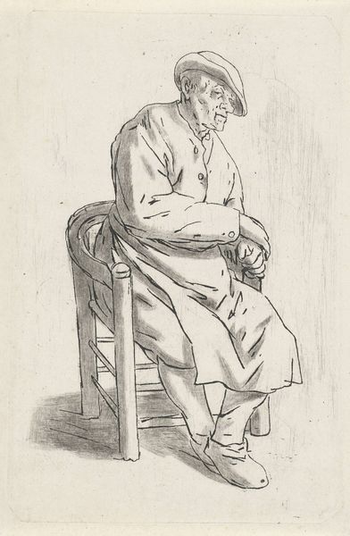 Viggo Johansen sketched this seated old man with graphite on paper, capturing a quiet moment in Hornbæk. The most striking element is the old man's hands clasped in his lap, a gesture laden with a long history. We see this motif echoed across time, from ancient Roman sculptures to Renaissance portraits, where it often signifies contemplation or resignation. Consider Rodin's "Thinker"; the seated pose and hand-to-chin gesture invite us to consider humanity's weighty thoughts. In Viggo Johansen's sketch, the clasped hands may signify both introspection and a quiet acceptance of life's passage. This simple gesture connects us to a universal human experience, resonating with a collective memory of shared emotions. The pose invites us to consider the cyclical nature of human emotions, resurfacing and evolving across different eras. The psychological weight of such simple symbolism cannot be overstated.