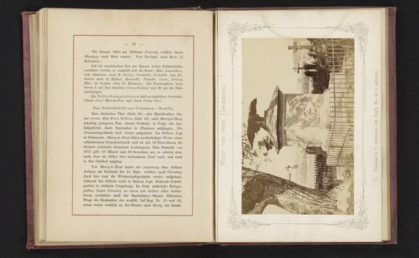 Editor: Here we have "Gezicht op de Feste Prinz Friedrich-Karl in Metz," a photograph from before 1875, by C. Holt, presented as an albumen-silver print. The imposing architecture looms with an almost ghostly presence given the hazy quality of the print. What aspects of the history inform our understanding of this photographic landscape? Curator: Indeed, the image possesses a spectral quality. The historical context here is crucial. Metz, with its fortifications, occupies a complex place in Franco-German relations. Given the date, before 1875, this photograph exists in the shadow of the Franco-Prussian War and Germany’s annexation of Alsace-Lorraine, including Metz. We are witnessing the visual representation of contested space. What does the imposing architecture convey to you in light of these geopolitical tensions? Editor: It definitely communicates power, and almost an implied threat, seeing how formidable it looks. So, the photograph then, serves not just as documentation, but as a statement? Curator: Precisely. Early photography was never neutral. The choice to depict this fort, this symbol of military might, speaks volumes. Consider how this image may have functioned within the rhetoric of nation-building, of asserting dominance over a newly acquired territory and a subjugated population. Who was the intended audience for this image, and what ideological work was it designed to perform? These are critical questions. Editor: So, we’re not just looking at a picture of a fort; we’re looking at a visual representation of power dynamics at play in 19th century Europe. Curator: Absolutely. And that invites us to reflect on the enduring legacy of such representations and their role in shaping our understanding of borders, nations, and the very idea of belonging. The photograph serves as a potent reminder of the intimate connections between aesthetics and politics. Editor: That's fascinating; I’ll never look at an old photograph the same way again. Thanks!