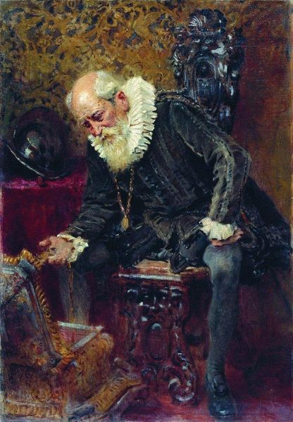 El Greco's "St. Ildefonso" was painted with oil on canvas, a common medium during the period. The artist applied thin layers of paint that reflect light, creating a brilliant, luminous effect, especially on the red velvet cloth, richly decorated with gold embroidery. El Greco's style is characterized by elongated figures and dramatic compositions, imbuing the painting with a sense of spiritual intensity. As in much of his other work, the artist created this feeling through the manipulation of the materials he used and techniques that were considered highly unconventional for painting at the time. There is a division of labor inherent to the artwork: from the creation of the canvas to the preparation of the paint and the application of gold leaf, each step requiring specialized skills. We can imagine that each step was outsourced to workers and tradesman employed by the artist. This reminds us of the economic systems that supported artistic production during the 16th century. Looking closely at the materials, processes, and context in which this painting was made, we can better appreciate El Greco's remarkable achievement.