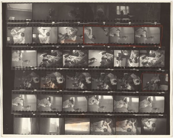 This is Robert Frank’s contact sheet, *Guggenheim 391/Americans 29--Gallup, New Mexico*. Frank shoots from the hip, capturing a kind of messy energy. The high contrast gives it a stark, almost aggressive feel. The materiality here is all about the grain and the grit. Look at the way the images are sequenced. It's like a visual rhythm, a beat that pulls you along. I see the world in smudges, gestures, and accidents, and this contact sheet is a catalog of them. Here, a blurry figure becomes as important as a sharp portrait. It's about the feeling of being there, not just the facts. Frank’s work reminds me of Garry Winogrand, another street photographer who wasn’t afraid to get close. But Frank has a darkness, a sense of alienation that's all his own. He shows us that photography, like any art, is about how you see, not just what you see.