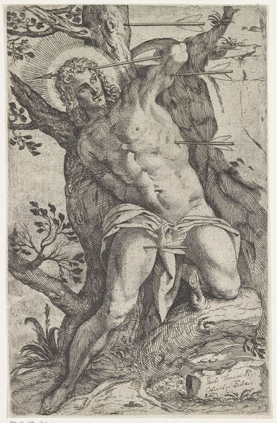 Editor: This is Cavaliere d'Arpino's "Study of a Male Nude," dating from between 1568 and 1640, created with charcoal. The figure's pose seems so dynamic, almost like he’s caught in a moment of struggle. What do you see in this piece beyond the obvious skill in rendering the human form? Curator: It's not just a celebration of idealized masculinity; it’s a glimpse into the construction of power during the Renaissance. These studies of male nudes weren’t simply academic exercises. Think about the social and political context: how were male bodies, particularly idealized ones like this, used to signify strength, dominance, and authority? The Renaissance was also a period of intense exploration of power dynamics and their manifestations in social practice and identity, right? How does this nude embody those anxieties, and who does this image serve, ultimately? Editor: So you’re saying this image isn't just about the beauty of the human form, but it's also about the power structures it reinforces? It feels relevant even today. Curator: Exactly. Consider who typically commissioned and owned such images. Powerful, wealthy men who used them to legitimize their social standing. The gaze embedded in this drawing is critical. Who is invited to gaze, and why? Editor: That's fascinating, it really changes how I look at it. The body isn’t just a body; it's a statement. Curator: Precisely. Art doesn't exist in a vacuum. The choices the artist made – the pose, the musculature, the medium – they all contribute to a larger conversation about power, gender, and representation. This impacts identity and social interaction. The artwork then prompts us to rethink contemporary practices of portraiture. Editor: Thanks for offering an eye-opening take on Cavaliere d'Arpino's drawing. It definitely shifted my perspective! Curator: It’s essential we ask such questions if we want to really understand the significance of such powerful images from our history.