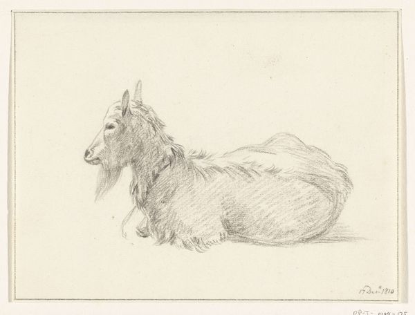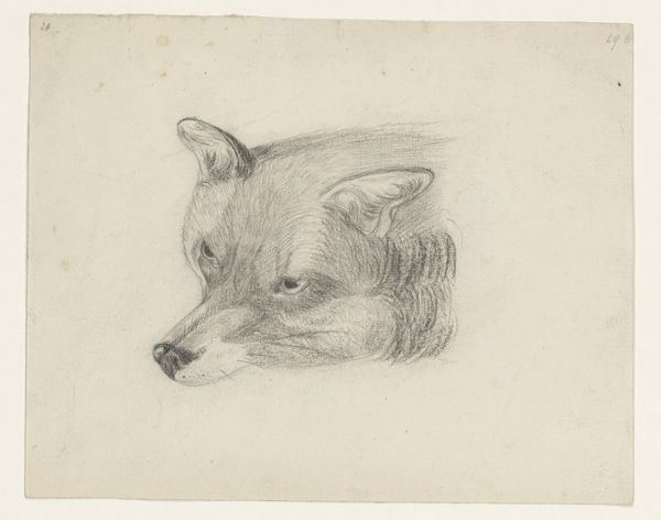 Curator: Welcome. Here we have Jozef Israëls' "Two Studies of a Dog," a pencil drawing on paper, believed to have been created sometime between 1834 and 1911. Editor: It feels quite intimate, almost casual. The sketched lines create a soft, subdued atmosphere. I’m drawn to the dog’s languid posture; there’s a sense of quiet observation here. Curator: Note how the medium itself—pencil on paper—lends to this intimacy. Israëls was renowned for his sympathetic depictions of working-class life. Do you think this drawing challenges the academic tradition by turning to the domestic sphere? And if so, in what way does the process amplify that sense of intimacy? Editor: The dog as a symbol is multilayered. On the one hand, unwavering loyalty and companionship but given Israëls’ background and usual artistic themes of depicting marginalized groups, could this relaxed pose subtly subvert classical depictions of powerful canine figures as guardians of wealth or status? Curator: That's a really astute observation. Given Israëls interest in scenes of daily life, this work brings into focus the use of readily available materials like paper and pencil. Israëls wasn't working with the labor-intensive paints and canvases often employed to depict more stately subject matter, it also creates a unique record of skill acquisition, documenting mark by mark. Editor: And look at the slight erasure marks – remnants of the artist’s process. They make us question how fixed symbols are. How the very act of depicting something – be it dog, human, landscape – imprints certain meanings. I can see layers of narrative, a feeling of the dog being ever present. Curator: By focusing on familiar scenes of daily life, Israëls created imagery that spoke directly to people about shared realities, in this way blurring the divide between observer and subject and celebrating the importance of craft as well as art. Editor: Ultimately, I am left feeling like this study leaves something incomplete, inviting deeper symbolic explorations into the simple acts of living, seeing, and portraying. Curator: Yes. It’s in this raw depiction, through both subject and application, that the true significance of "Two Studies of a Dog" emerges, reminding us of the emotional resonance imbued in ordinary things.
