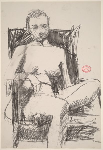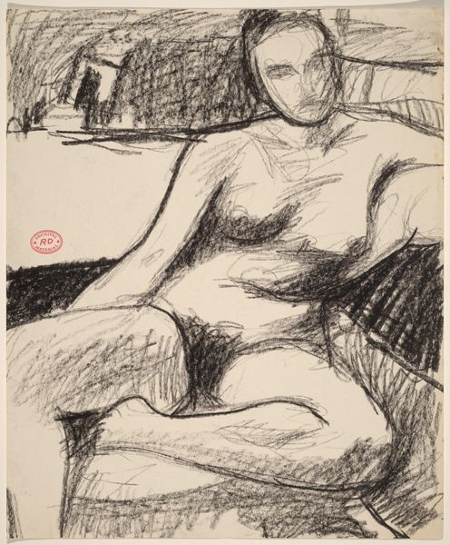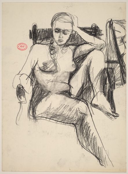 Editor: This is an untitled drawing of a seated female nude, made by Richard Diebenkorn sometime between 1955 and 1967. It feels quite intimate, almost like a stolen glance. What’s your take on it? Curator: Diebenkorn's figuration here is fascinating, particularly considering the social and artistic contexts. Nudes, especially female nudes, have historically been a charged subject within art. This piece, falling roughly within the mid-20th century, exists amid evolving views on sexuality and representation. Think about the male gaze; do you see that at play here, or something different? Editor: Hmm, that's a great point. I'm not sure, actually. There's something about the pose, the slightly awkward angle, maybe, that pushes back against a purely objectifying gaze? Curator: Precisely. And what about the work's presence in museums or galleries? How does that shape our perception of this "private" moment now being very publicly displayed? The museum as a space inherently influences how we understand it. Do you feel there’s an intimacy in drawing, that would disappear in painting for instance? Editor: Definitely, the medium itself lends itself to a certain rawness and vulnerability. Like a fleeting, unpolished thought, before it has to exist permanently. This drawing on view becomes something almost of documentary interest. A voyeuristic lens into artistic expression and cultural identity in California from the 50’s onward. Curator: Excellent point. It speaks to Diebenkorn's process and the wider evolving acceptance and celebration of "unfinished" or more personally felt, exploratory pieces. Editor: This has been a revealing journey of context versus work, curator to editor. Thanks for illuminating my art awareness! Curator: The pleasure was all mine, offering some insights through conversation. I think we’ve both deepened our view to Diebenkorn today.