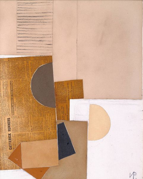Curator: Lajos Kassak's "Pictorial Architecture," created in 1923, employs a mixed-media approach, blending drawing techniques with geometric forms. Editor: It's like a city built from chocolate bars and… blueprints? The mood is surprisingly serene, considering all the sharp angles. A quiet, meditative cityscape. Curator: Kassak was deeply involved with the avant-garde movement in Hungary and beyond, particularly Constructivism. This piece reflects that influence, with its emphasis on pure geometric form and its rejection of traditional representation. Consider how the "architecture" exists purely as a play of shapes, lines and colors rather than attempting to depict a real building. Editor: Right, it's not a building; it's the *idea* of a building. A ghost of structure. And that restricted color palette gives it this earthy, grounded feeling. It feels almost archaeological, like uncovering fragments of something ancient and unknown. I feel like the red dot has a purpose but it seems rather…lonely? Curator: Precisely. The use of mixed media reflects the Constructivist focus on materiality and industrial processes. But also consider Kassak’s Social Revolutionary activism. These shapes may symbolize a push for order, but also the deconstruction of the old structures. What are your thoughts on that relationship? Editor: I didn’t catch the call for deconstruction from the shapes and palette used, personally. I found myself drawn to the negative spaces created, like hidden alleyways or undiscovered chambers. You almost expect them to hold secrets. In contrast with other architectural works it stands apart. Curator: It’s this tension, this constant play between structure and void, control and chaos, that makes Kassak's work so compelling. Editor: It's like a little puzzle box for the eyes. And, as you said, maybe one for the soul as well. A city you feel, more than see. Curator: A perspective I did not see at first. This work of Lajos Kassak seems more striking now. Thanks for taking me through the alleys of this chocolate cityscape. Editor: Glad to bring it to life! It's more vibrant to me now, too, thinking of how we add a bit of our story to a work of art just by pausing with it.