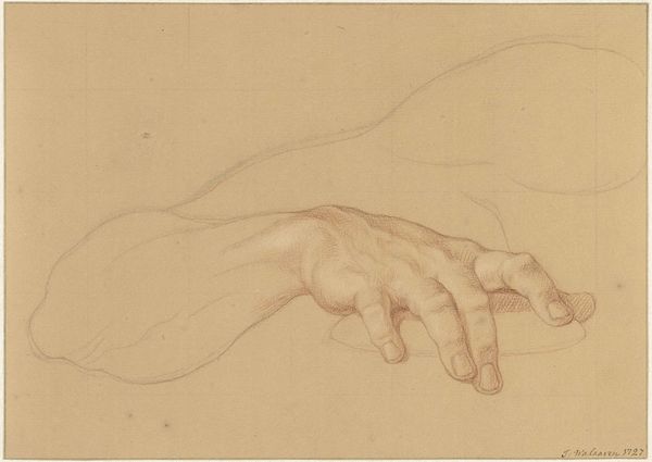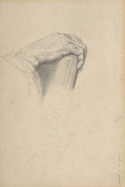 Curator: This charcoal drawing is entitled "Main et violon," translating to "Hand and Violin." We attribute it to Pascal-Adolphe-Jean Dagnan-Bouveret, though we lack a specific creation date. Editor: Immediately, I'm struck by the incompleteness, yet inherent tension within this study. It’s less about the violin itself, and more about the anticipation right before music is created. Curator: Agreed. Note the realist style combined with unfinished lines which evoke a potent narrative about artistic expression. Dagnan-Bouveret lived through tumultuous political shifts. I wonder how this fragmentary, yet dedicated drawing can allude to anxieties surrounding artistic freedom and national identity through artistic skills. Editor: I am fascinated by the symbolism present in hands as visual imagery throughout history and its embodiment as a synecdoche. Hands are the conduits of action, labor, creation; in many artistic contexts, it connects our bodies and minds. But the grip... that says everything! Does it imply hesitancy or readiness? Is it more broadly, in psychological terms, about our ability to control our creative impulses? Curator: The drawing invites an intersectional discussion, exploring how musicians and their access to resources might intersect with class or gender during the late 19th century, especially in the salon culture of the time. One must remember how social and gender roles dictated access. Editor: Very interesting lens. I had not considered those socio-historical issues directly through this study before but you shed some light. Curator: Considering that cultural memory in Dagnan-Bouveret's period had great focus on symbolism, exploring societal power is an intrinsic layer for any modern analyses. Editor: Right—art always invites the convergence of individual introspection with collective reflection. Well, this glimpse has made me appreciate even more what a simple charcoal sketch can unveil when we pause and allow the dialogue between the artwork and its setting. Curator: Precisely, looking at works like these invites not just aesthetic appreciation but a crucial awareness to both historical agency and socio-political complexities within creative narratives.