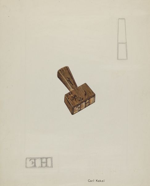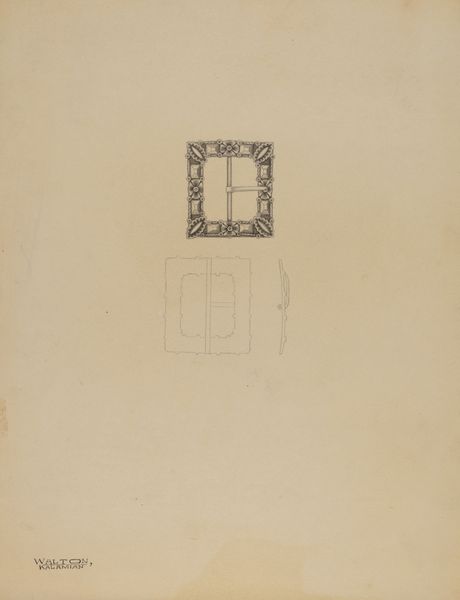 Editor: So, we're looking at "Pin," a mixed-media drawing from sometime between 1935 and 1942 by Vincent Burzy. What strikes me is its almost blueprint-like quality; we have the finished, colored product at the top and then these fainter, more technical sketches below. What's your take? How do you interpret this work? Curator: Given the date, this object suggests several possible readings from a historical point of view. Could this have been designed for mass production, aligning with the growing industrialization and consumerism of the era? The clear depiction implies intent to communicate the design to others. It also calls into question, who was Burzy designing for? Was this commissioned by a specific company? Editor: That's fascinating. The clean lines and precise execution didn't immediately scream "mass production" to me, but I see how the drawing could serve as a prototype or template. Was it common for artists to create such detailed renderings for manufacturers back then? Curator: Absolutely. The mid-20th century witnessed the rise of industrial design, and the relationship between art and industry became increasingly intertwined. Visual representation became essential. The almost clinical presentation speaks volumes. It lacks personal expression and invites the assessment of functionality. We see a blending of design aesthetics, reflecting both utility and artistic vision. Editor: So, the purpose here might be more about conveying information than expressing an emotion. Looking at it with that lens, it appears almost detached. Were such representations used in advertisements and catalogues for the consumption of the middle class, perhaps? Curator: Precisely. Its clarity could have served advertising purposes. And it makes you think about consumption patterns in those times. These kinds of objects were part of a burgeoning consumer culture where every aspect of an item, even a humble pin, could be elevated through careful design and targeted marketing. This wasn't *just* a drawing of a pin, it was an invitation to participate in a specific lifestyle or aspirational ideal. What a great example. Editor: That shifts my perspective considerably. I came in thinking this was a straightforward study, but it's really a window into the economic and social forces shaping design and consumption at the time. Curator: Exactly! It is amazing to observe social reflections through material culture.