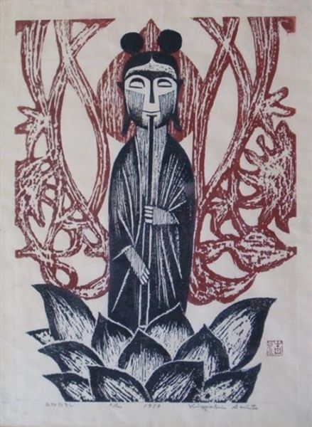 Charles Knowles created the artwork, "A King and the Lord," during his short life, which ended tragically when he was just 19. This piece invites us to consider the intersection of earthly power and spiritual authority. In the print, we see a king rendered in striking red, adorned with a crown. Beside him stands a lordly figure, perhaps a deity, holding a peculiar offering: a carrot. The contrast between the king's traditional symbols of power and the lord's humble vegetable raises intriguing questions. Is Knowles suggesting an alternative form of power rooted in the natural world? Consider Knowles' personal background. His artistic voice, though brief, speaks to broader questions about faith, authority, and the value we place on different forms of knowledge. The image creates a space for reflecting on the nature of leadership and spirituality.