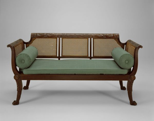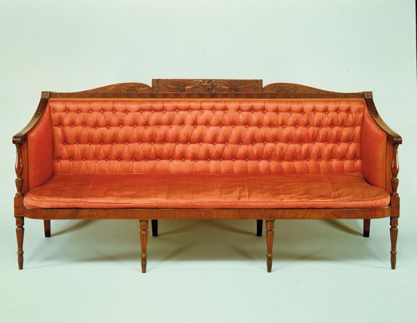 This sofa was made by Samuel McIntire, a renowned woodcarver and architect, most likely in the late 18th or early 19th century. McIntire was working in Salem, Massachusetts, during a period of significant social and economic change in the newly formed United States. The design of the sofa, with its neoclassical elements, reflects the cultural aspirations of the American elite at the time. They sought to emulate the refined tastes of Europe, while also establishing a distinct American identity. The sofa's presence in the Metropolitan Museum speaks to the ways institutions shape our understanding of art and culture. It elevates a functional object to the status of fine art, imbuing it with historical and aesthetic value. Understanding the social and economic context in which this sofa was made can offer insights into the lives and values of the people who commissioned and used it. Research into period documents, such as letters, inventories, and trade records, can reveal the social history embedded in this object.