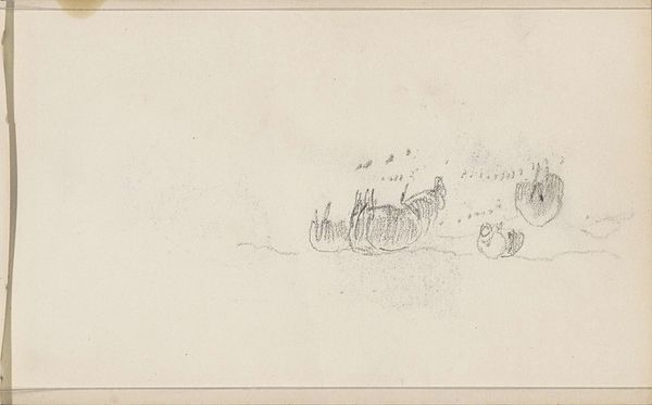 Editor: So, this is Theodore Rousseau’s “Study of a Cart” from 1825. It's a pencil drawing, and it has this unfinished quality that I find really appealing. How would you interpret this work? Curator: Well, immediately, my interest is drawn to the very deliberate act of choosing pencil, a readily available, almost ubiquitous material even in the 1820s. It speaks to the democratizing impulse within art – this isn’t oil paint for a wealthy patron, it's a study, raw and immediate, focused on the cart's materiality, its construction. What was the role of the cart in that society? Editor: It probably served many roles for everyday life. Did the artist care about the social context for the art creation or his choices of materials, or did the viewer even know anything about this when they saw his work? Curator: Absolutely, consider how landscape art at this time was evolving. The focus shifted to the working landscape and rural labor that carts facilitated and demanded. The labor and materials become very clear once you start to think that way. You can almost feel the weight of what this cart carried, what human effort and materials made that weight possible. It’s less about picturesque scenery and more about the tangible means of production and transport. Editor: I see what you mean. Thinking about the drawing this way reveals something quite profound about a very ordinary object. It shifts our perspective to the role of the working class who use such a cart, and how reliant they are upon simple raw materials, like wood or the metal in the wheels. Curator: Exactly. It prompts us to consider the socio-economic forces embedded in the simplest objects, highlighting how art can reveal the usually unseen mechanisms of society. And it asks, what kind of art would it be today? Editor: Looking at "Study of a Cart" with fresh eyes has definitely helped to transform it into more than a simple scene; I will definitely spend more time considering all aspects of an artist's choices of medium, content, and process in the future.