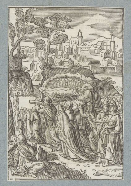 Christoffel van Sichem II created this woodcut depicting the inhabitants of Nazareth driving Christ out of their city. The most dominant symbol is the cliff: here, it signifies a point of rejection and potential violence. This motif of expulsion from a high place resonates with ancient myths and biblical stories alike, mirroring, for example, the fall from the mountain in pagan traditions. The act of pushing someone off a cliff is not merely physical; it’s a symbolic act of severing ties, rejecting ideas, and enforcing boundaries. This same motif recurs through centuries of art, literature, and even our dreams, each time carrying the weight of primal fears and societal anxieties. The intensity of the scene, captured in the figures' gestures and expressions, reveals the powerful, subconscious forces at play in the collective psyche. This woodcut is not simply a depiction of a biblical event, but a window into the timeless drama of acceptance and rejection, continuously reenacted across human history.