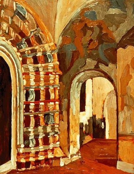 Andrei Ryabushkin created "Red House," a 49 x 47 cm painting, sometime before 1904. Ryabushkin lived during a time of intense cultural re-evaluation in Russia. His work often focused on Russian medieval life, a period that was seen as the foundation of Russian identity. In "Red House," the color saturates the scene, creating a powerful, almost overwhelming sensory experience. The gilded details, the stained glass, and the heavy fabric draped over the chair all suggest opulence and power. Yet, the space is empty, devoid of human presence. This absence creates a sense of melancholy and introspection. Ryabushkin was part of a generation of artists who sought to define a distinctly Russian artistic identity, separate from European influences. He was interested in the history of the Russian people, particularly the peasant class, and their cultural traditions. Ryabushkin's painting then, presents us not just with a visual representation, but with a reflection on the weight of history, the allure and emptiness of power, and the ongoing construction of cultural identity.