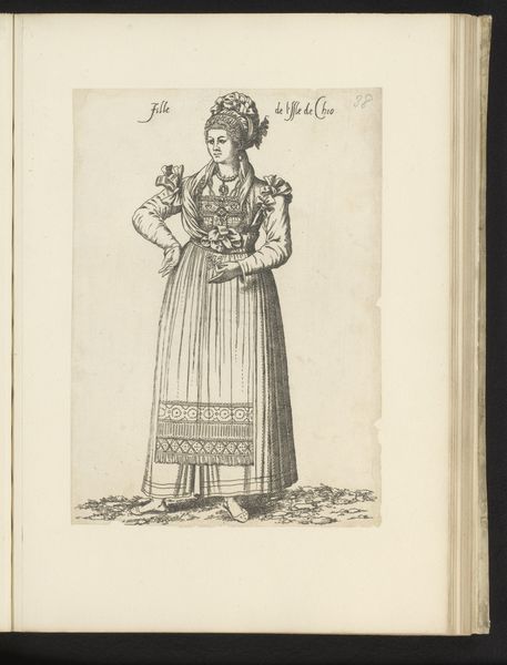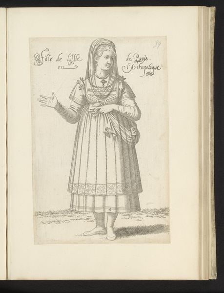 Editor: Here we have a 16th-century engraving entitled "Turkse edelvrouw" by Léon Davent, rendered in ink on paper. The woman’s garments are exquisitely detailed, yet her gaze is so direct; it's a striking contrast. What can you tell me about its historical context? Curator: It is interesting to consider this work as an example of early modern European engagement with the Ottoman Empire. Consider that this piece emerges during a period of intense political and cultural exchange, frequently fraught, but also defined by trade and diplomacy. The "exotic" was often represented and consumed. What effect do you think such a detailed, yet distanced, portrayal might have on its viewers? Editor: It presents this figure, both empowered and distant, which must have been intentional. Were these engravings widely circulated, then, shaping perceptions? Curator: Absolutely. Prints like this served as vital visual documents, especially before photography. They provided a window, albeit a mediated one, into cultures and societies beyond Europe. But were these accurate depictions? Or were they tailored for specific audiences, catering to particular expectations about the ‘Other’? Editor: That's a great question. The term ‘Turkse edelvrouw’ itself seems laden with assumptions, immediately positioning the subject within a European framework. So this image actively participated in defining and shaping that period's socio-political context. It reflects power dynamics more than reality, doesn’t it? Curator: Precisely. Recognizing how the work engages with prevailing social narratives reveals it not as a mere record, but an active agent within cultural discourse. It highlights the complex relationship between art, representation, and socio-political forces at play during the Renaissance. Editor: That gives me a richer appreciation for this work, realizing how representation is never neutral but tied to its historical and social moment. Thanks! Curator: And understanding the agency of images, how they not just reflect but actively shape social reality, that's truly invaluable.