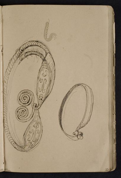 Editor: This is "Studier af cirkulære ornamenter," or "Studies of Circular Ornaments," by Niels Larsen Stevns, made between 1906 and 1910. It’s a pencil drawing on paper, currently held at the SMK in Copenhagen. The sketch-like quality feels so immediate and accessible. What draws your eye when you look at this? Curator: The reduction to line is paramount. Note how the artist uses it not only to define form but also to create texture and suggest tonal variation. This economy of means draws our attention to the essence of each motif, prompting contemplation on how a simple alteration of curvature or the interval between lines can alter perception. What significance do you ascribe to the circular form's dominance? Editor: Well, they look almost like blueprints for Art Nouveau jewelry, and the circles create this sense of wholeness and flow... maybe reflecting nature's patterns? Curator: Precisely. The interplay of line and shape produces rhythm and balance. The concentric arrangement isn’t merely decorative; the eye is constantly moving towards a point of central origin. Notice, though, how each form has slight deviations, setting it apart and demanding that each receives individual examination, before taking in the combined structure. Can this combination tell us of Larsen Stevns approach to creation? Editor: So, the individual components create a tension with the unified whole? That makes me think about Stevns’ process of observing then deconstructing. Curator: Precisely, his process can then invite the same reflection for the viewer. He isolates design elements, enabling us to appreciate the construction of ornament in a simplified structure. The visual language—simple and clear—invites decoding, offering insights into abstract harmony, proportion, and design. Editor: That's a totally different way of thinking about it. I was so focused on the image at first, I hadn't considered that simplicity. Curator: The starkness of the sketch accentuates these more conceptual components, allowing deeper introspection. It pushes beyond pretty patterns. Editor: I'll definitely look at sketches differently now – more about structure than just the surface. Curator: A fresh perception offers boundless prospects of comprehending any aesthetic undertaking.