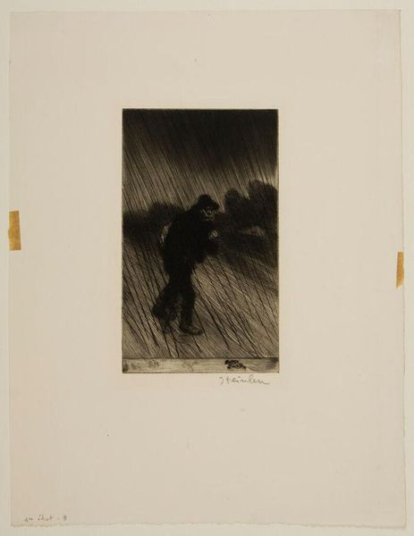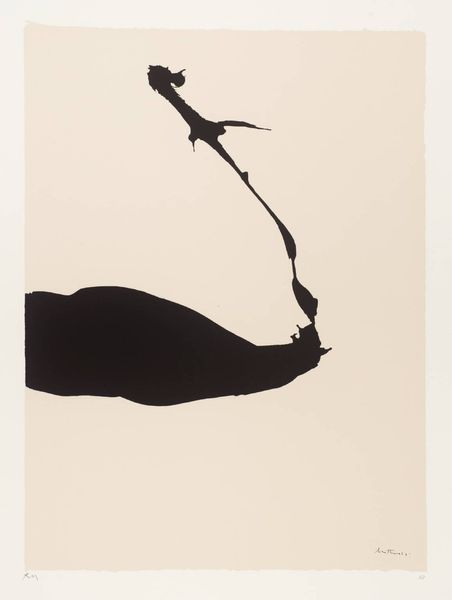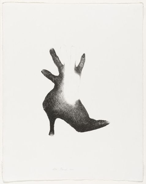 Curator: Marcel Mariën's "The Prostitute r..." confronts us with an abstract figure dated September 1966. Editor: The stark monochrome immediately conveys a sense of harshness, almost like shattered glass pieced back together. Curator: Precisely. Mariën, situated within Surrealism and later the Situationist International, uses abstraction to explore complex themes of exploitation and objectification. Considering his broader critique of capitalist structures, this jagged form speaks volumes. Editor: I'm thinking about how the work itself was produced. What material processes are implicated in creating this angular form? Was it cut and pasted, or some type of dark room process? Curator: I believe it is a constructed photogram. Editor: So, the photogram being a camera-less photograph, made with simple materials, forces us to think about how the artist implicates themself into the work. Curator: I agree, and the provocative title alongside the fragmented silhouette encourages a challenging dialogue about the representation of marginalized bodies. Editor: It certainly leaves you contemplating the means of representation and their impact. Curator: A potent reminder of the political dimensions embedded within abstract forms.