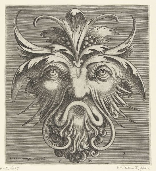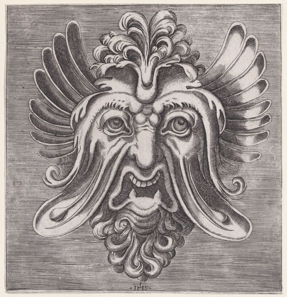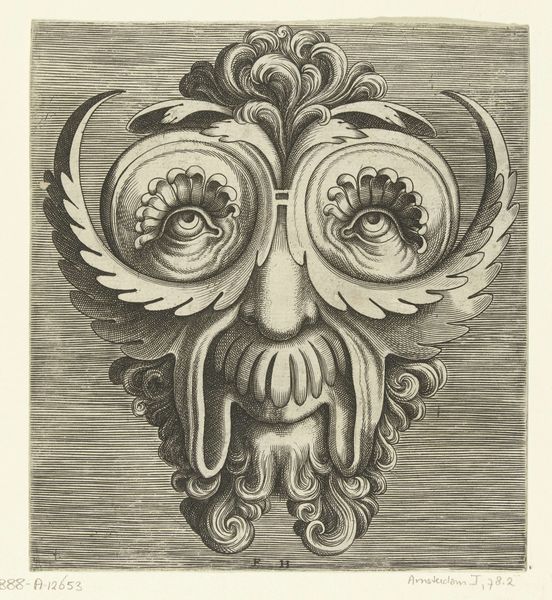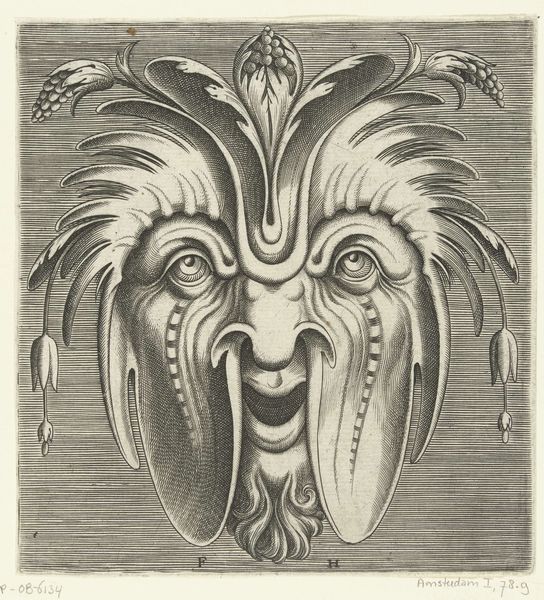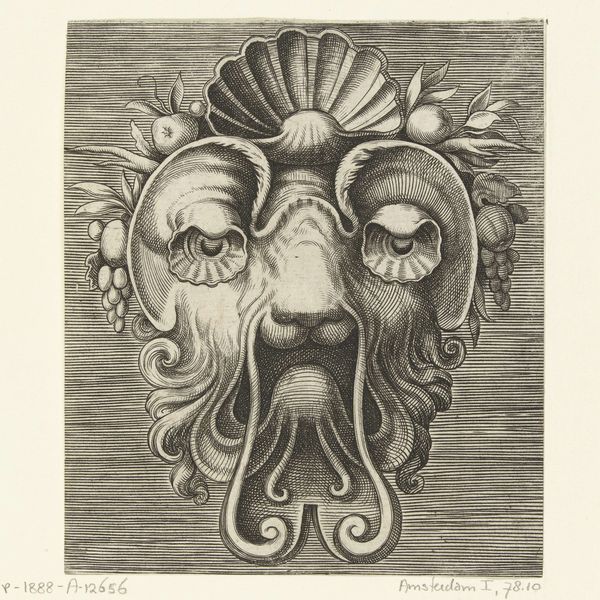 This is Frans Huys’s engraving of a mask with two snakes emerging from the eye sockets. Executed sometime in the mid-16th century, this print emerges from a moment of immense cultural and religious upheaval in Europe. Huys was working in Antwerp, a city at the crossroads of artistic innovation and religious conflict. His work reflects the anxieties of the time, but also, perhaps, a sense of the grotesque. The mask, a symbol of concealment, is here made monstrous. The snakes, symbols of temptation and deceit, replace the eyes, suggesting a world where appearances are not only deceiving but actively malevolent. Consider what it might have meant to visualize such a disturbing image in a society grappling with questions of faith, identity, and morality. The emotional impact of this piece lies in its unsettling combination of the familiar and the horrifying, a reflection of a society in turmoil.