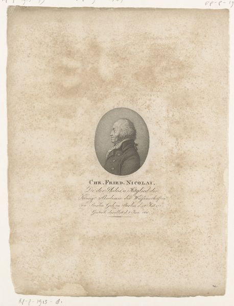 Editor: Here we have a print entitled "Portret van Jean-Dominique, comte de Cassini" made between 1784 and 1834. It looks like an engraving, possibly on paper. It’s a pretty standard portrait, but something about its antique style is really catching my eye. What can you tell me about this work? Curator: This portrait offers us a window into the social and intellectual milieu of its time. The sitter, Jean-Dominique Cassini, was a prominent astronomer. We see the restrained style of neoclassicism, which served as a visual language reinforcing notions of order and reason championed by Enlightenment ideals. How do you think this artistic choice reflects the subject's societal standing? Editor: I guess choosing Neoclassicism gives him an air of sophistication and authority that maybe a more Romantic style wouldn’t have. Curator: Exactly. The portrait's medium – print – also democratized the image, making it more accessible. How does making knowledge and images accessible affect existing power structures? Editor: Hmm, distributing it widely definitely breaks down the barriers of access and gives more people a way to be part of a conversation, whether about astronomy or the image itself. Curator: Precisely. Furthermore, consider the politics embedded within portraiture itself. Whose likenesses are preserved, and why? Who is historically excluded? These are crucial questions we need to continually ask ourselves. Editor: That's really insightful! It's made me think about how art, even something that seems straightforward, can be filled with all sorts of deeper meanings. Thanks for pointing that out. Curator: My pleasure. Analyzing art through the lens of power and representation opens up a whole new world of understanding. Keep questioning!