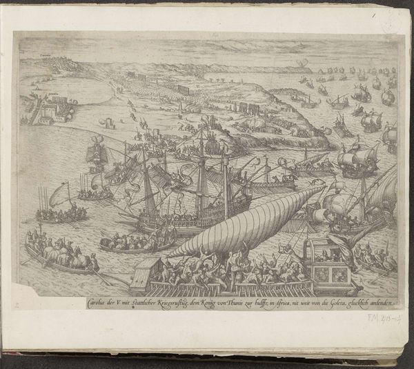 Editor: Here we have Pieter Wauters' "Blad G: elfde praalwagen" from 1767, an engraving printed on paper. It’s a really fascinating image, almost like a collection of different tableau vivant scenes. What grabs you when you look at this print? Curator: What strikes me immediately is the intricate labor embedded within this engraving. The meticulous rendering of each figure, each wave, each decorative element using line—all point to a highly skilled artisan operating within a specific system of production. Consider the engraver's tools, the paper, the printing press; how does this process reflect the material conditions of 18th-century printmaking? Editor: That’s a really interesting angle. I hadn't really considered the physical process itself so deeply. So, are you saying we should think about how this print was circulated and consumed back then? Curator: Precisely. These kinds of prints were often disseminated widely, acting as a form of visual currency. Look at the subject matter – allegorical floats! These wouldn’t just appear spontaneously. What kind of labour do you think went into not only making, but also *organizing* such spectacle? Consider the artisans who built the floats, the performers, even the social structure allowing such display. How did that context affect Wauters' choices of image making? Editor: It feels like I'm only scratching the surface. Looking at the different figures and the ship reminds me how many steps must have gone into realizing the floats themselves, and this engraving makes all of those tangible. Curator: It also complicates our modern understanding of ‘high art’. Is this merely documentation? Or something more akin to marketing material circulated within a tightly structured, mercantile society. What has changed about the status of labour, materiality and production between then and now? Editor: This discussion has completely changed my perspective. Thank you for pointing out those material and social layers that I hadn't seen. Curator: And you've reminded me how powerful close looking is. Thank you!